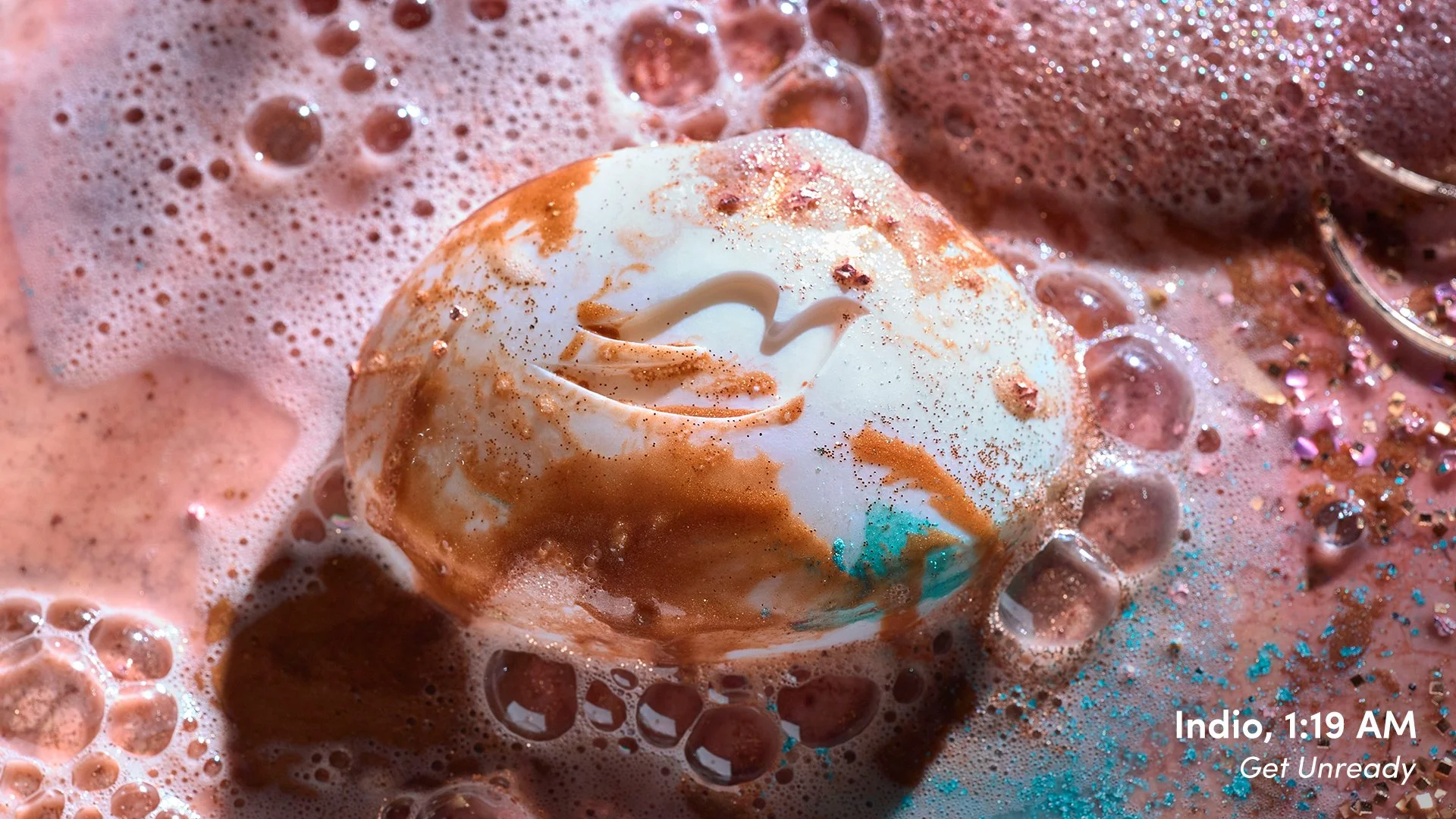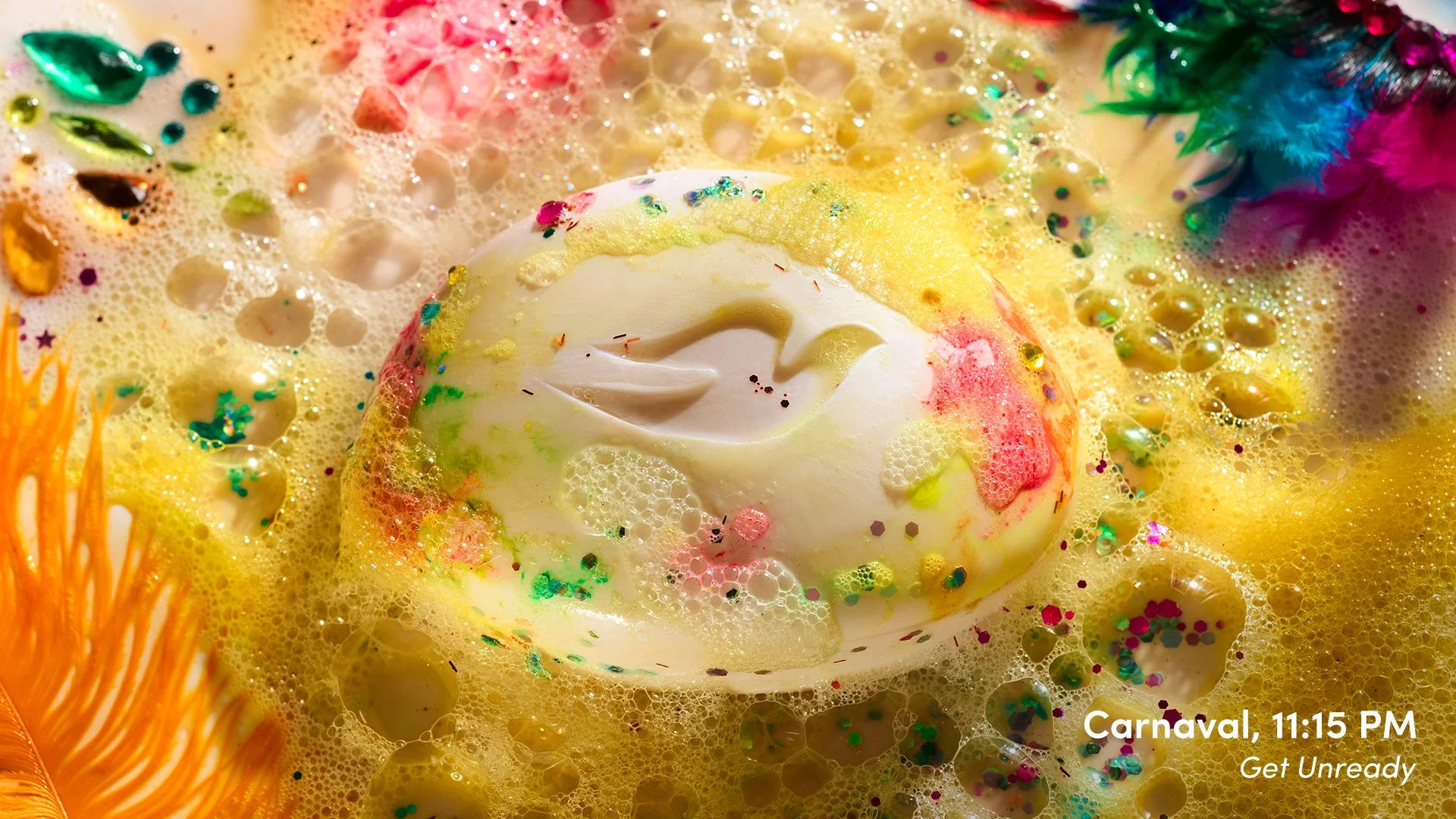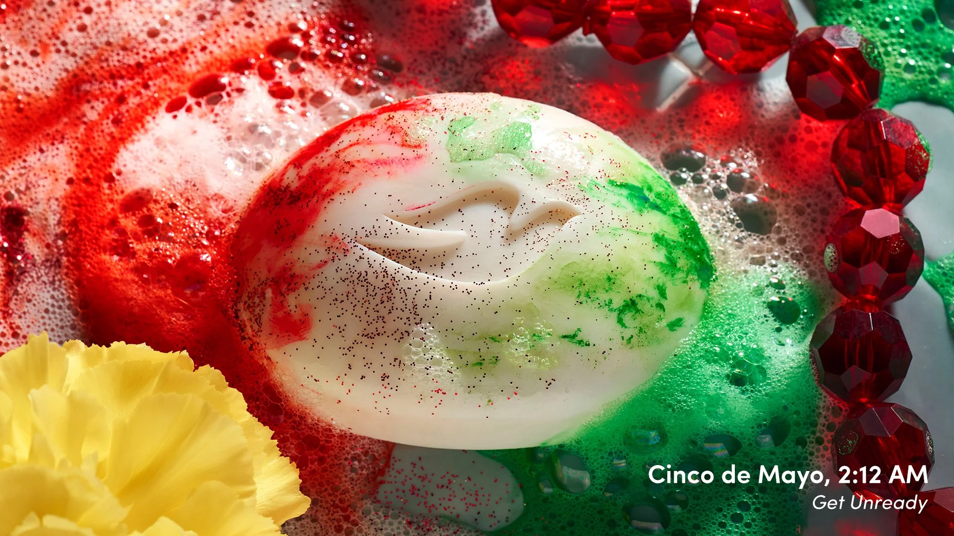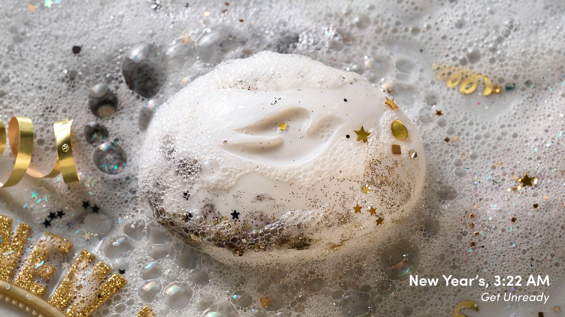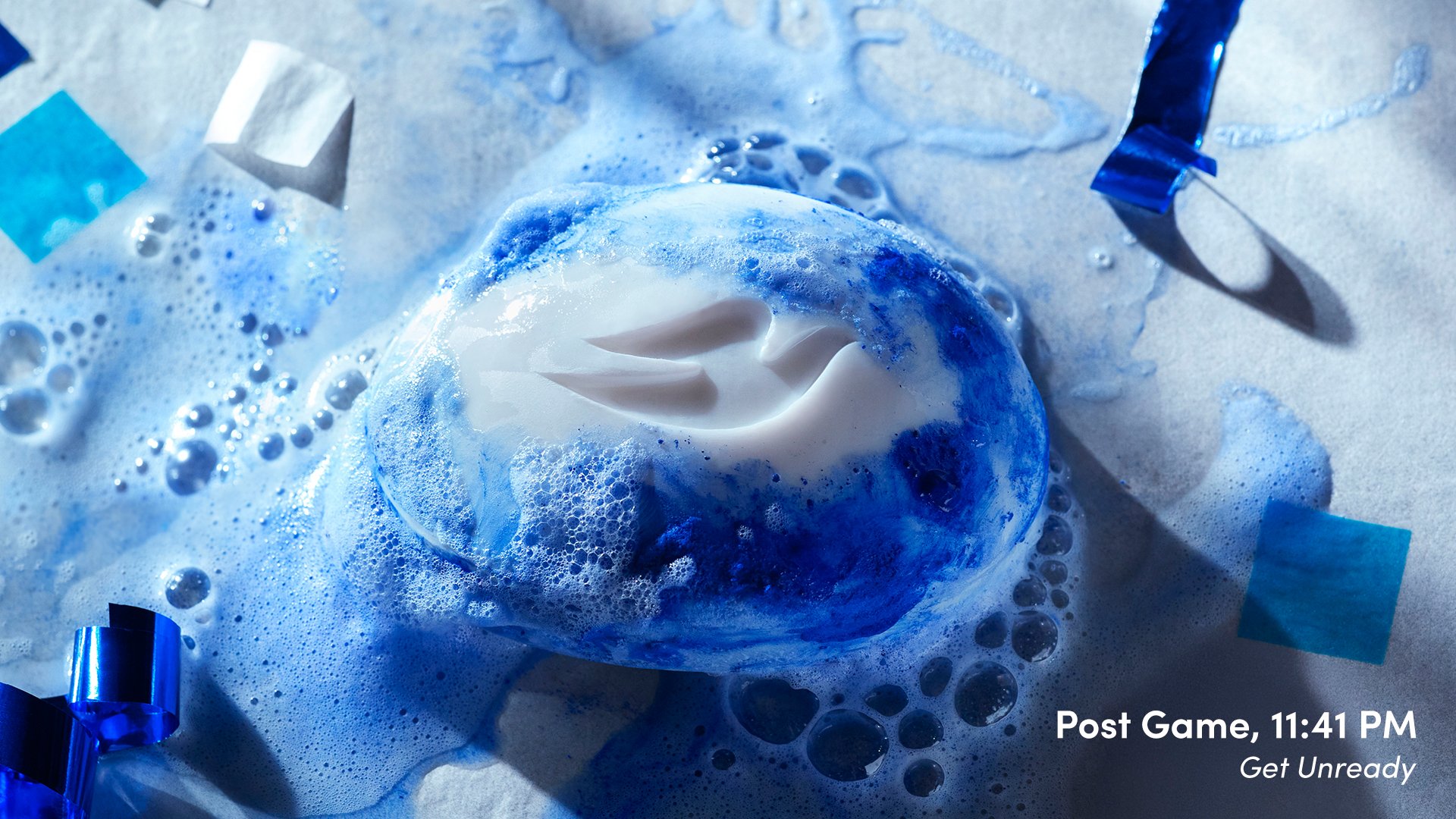 To show how the Dove Beauty Bar is perfect for removing makeup, we used the bar as a canvas for stories from the day before, covering it in makeup, glitter, feathers, and confetti.